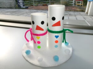 午前のクリスマス会では雪だるまのペン立てを作ります