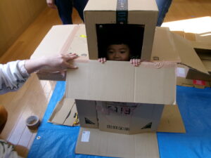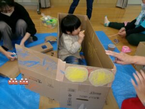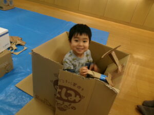 ぐるんぱすぺーすではダンボール遊びをしました。