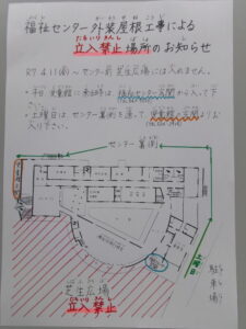 令和7年4月11日~外装屋根工事の為、三ヶ日総合福祉センター南側芝生広場は立ち入り禁止となります。