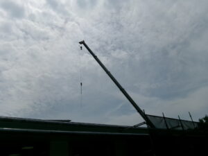 只今中庭に足場を組むために、大型クレーンが入っています。