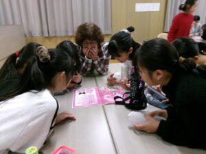 12月のこどもクラブでは『スノードーム』を製作しました。家から持ってきた飾りやビーズ、洗濯のりと水を混ぜた液を入れます。