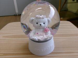 容器の中は雪が降っているような素敵な空間になりました。子どもたちは、中に入れた人形が膨張して倍ぐらいの大きさにみえると、大笑いでした。